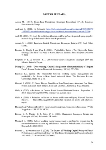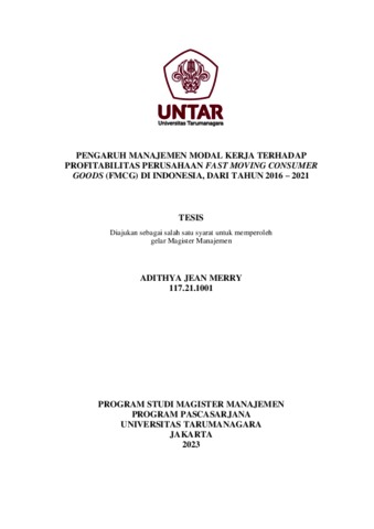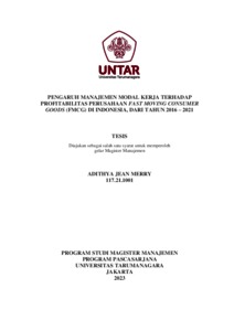 MERRY, ADITHYA JEAN (2022) PENGARUH MANAJEMEN MODAL KERJA TERHADAP PROFITABILITAS PERUSAHAAN FAST MOVING CONSUMER GOODS (FMCG) DI INDONESIA, DARI TAHUN 2016 – 2021. Masters thesis, Universitas Tarumanagara.