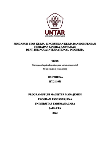 HANTRISNA, HANTRISNA (2022) PENGARUH ETOS KERJA, LINGKUNGAN KERJA DAN KOMPENSASI TERHADAP KINERJA KARYAWAN DI PT. INLINGUA INTERNATIONAL INDONESIA. Masters thesis, Universitas Tarumanagara.