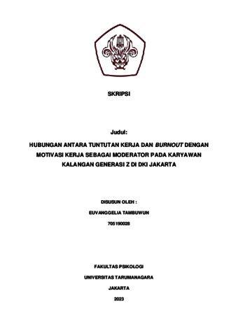 Tambuwun, Euvanggelia (2023) Hubungan Antara Tuntutan Kerja dan Burnout dengan Motivasi Kerja sebagai Moderator pada Karyawan Kalangan Generasi Z di DKI Jakarta. Skripsi thesis, Universitas Tarumanagara.