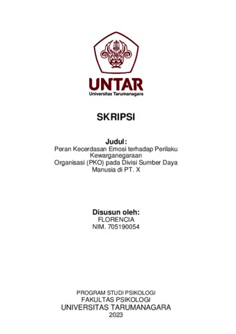 Florencia, Florencia (2023) Peran Kecerdasan Emosi Terhadap Perilaku Kewarganegaraan Organisasi Pada Divisi Sumber Daya Manusia di PT. X. Skripsi thesis, Universitas Tarumanagara.