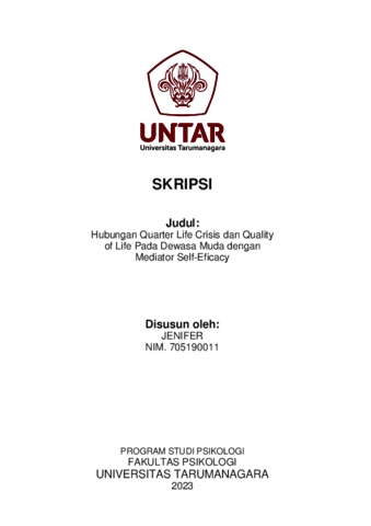 Jenifer, Jenifer (2023) Hubungan Quarter Life Crisis dan Quality of Life pada Dewasa Muda dengan Mediator Self-Efficacy. Skripsi thesis, Universitas Tarumanagara.