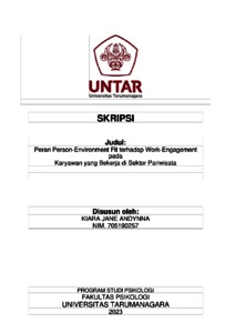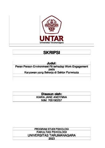 Andynna, Kiara Jane (2023) Peran Person-Environment Fit terhadap Work Engagement pada Karyawan yang Bekerja di Sektor Pariwisata. Skripsi thesis, Universitas Tarumanagara.