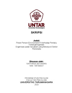 Setiawan, Nathania (2023) Pengaruh Person-Environment Fit terhadap Perilaku Kewarganegaraan Organisasi pada Karyawan yang Bekerja di Sektor Pariwisata. Skripsi thesis, Universitas Tarumanagara.
