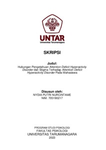 Nurcintame, Nydia Putri (2023) Hubungan Pengetahuan Attention Deficit Hyperactivity Disorder dan Stigma Terhadap Attention Deficit Hyperactivity Disorder Pada Mahasiswa. Skripsi thesis, Universitas Tarumanagara.