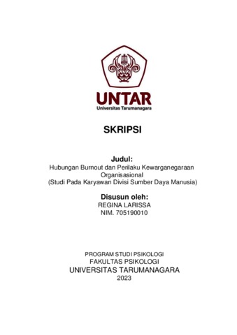 Larissa, Regina (2023) Hubungan Burnout dan Perilaku Kewarganegaraan Organisasional (Studi pada Karyawan Divisi Sumber Daya Manusia). Skripsi thesis, Universitas Tarumanagara.