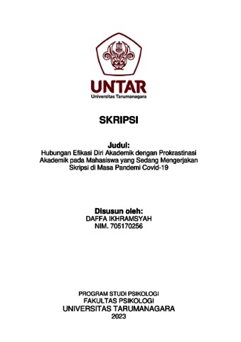Ikhramsyah, Daffa (2023) Hubungan efikasi diri akademik dengan prokrastinasi akademik pada mahasiswa yang sedang mengerjakan skripsi di masa pandemi covid-19. Skripsi thesis, Universitas Tarumanagara.