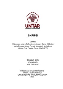 Faith, Jovia (2023) Hubungan antara Self-esteem terhadap Game Addiction pada Dewasa Muda Pemain Massively Multiplayer Online Role Playing Game [MMORPG]. Skripsi thesis, Universitas Tarumanagara.
