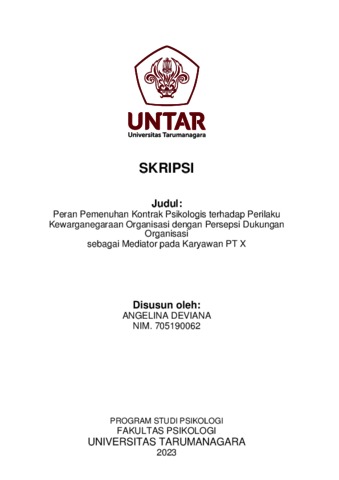 Deviana, Angelina (2023) Peran Pemenuhan Kontrak Psikologis terhadap Perilaku Kewarganegaraan Organisasi dengan Persepsi Dukungan Organisasi sebagai Mediator pada Karyawan PT X. Skripsi thesis, Universitas Tarumanagara.