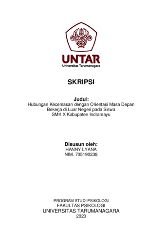 Lyana, Hanny (2023) Hubungan Kecemasan dan Orientasi Masa Depan Bekerja Di Luar Negeri Pada Siswa SMK X Kabupaten Indramayu. Skripsi thesis, Universitas Tarumanagara.