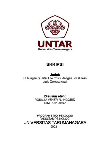 Inggrid, Rosalia Venerial (2023) Hubungan Quarter Life Crisis dengan Loneliness pada Dewasa Awal. Skripsi thesis, Universitas Tarumanagara.