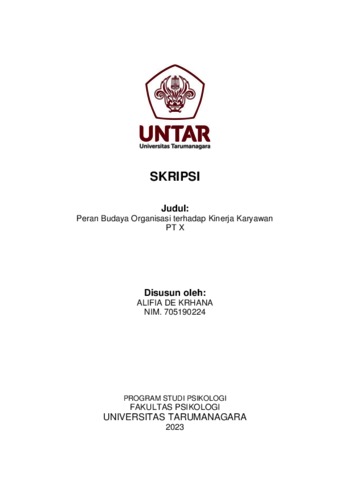 Krhana, Alifia De (2023) Pengaruh Budaya Organisasi terhadap Kinerja Karyawan PT X. Skripsi thesis, Universitas Tarumanagara.