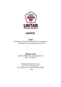 Erlaningtyas, Andini Dwininta (2023) Gambaran resiliensi siswa SMKN X Kabupaten Indramayu yang orangtuanya bercerai. Skripsi thesis, Universitas Tarumanagara.