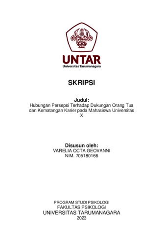 Geovanni, Varelia Octa (2023) Hubungan Persepsi Terhadap Dukungan Orang Tua dan Kematangan Karier pada Mahasiswa Universitas X. Skripsi thesis, Universitas Tarumanagara.