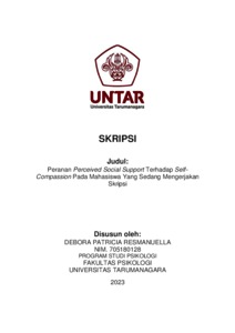 Resmanuella, Debora Patricia (2023) Peranan Perceived Social Support Terhadap Self-Compassion Pada Mahasiswa Yang Sedang Mengerjakan Skripsi. Skripsi thesis, Universitas Tarumanagara.