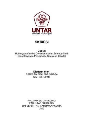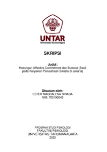 Sinaga, Ester Magdalena (2023) Hubungan Affective Commitment dan Burnout (Studi pada Karyawan Perusahaan Swasta di Jakarta). Skripsi thesis, Universitas Tarumanagara.