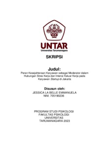 Emmanuela, Jessica La Belle (2023) Peran Kesejahteraan Karyawan sebagai Moderator dalam Hubungan Stres Kerja dan Intensi Keluar Kerja Karyawan Startup di Jakarta. Skripsi thesis, Universitas Tarumanagara.
