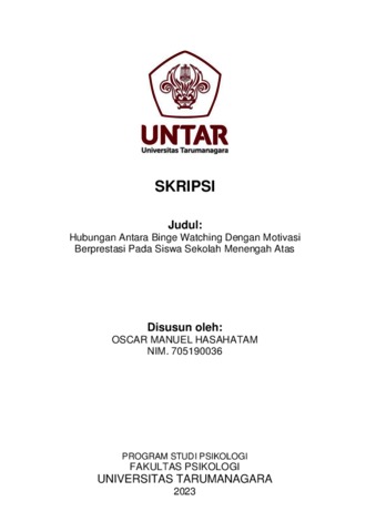 Manuel, Oscar (2023) Hubungan antara Binge Watching dengan Motivasi Berprestasi pada siswa sekolah menengah atas. Skripsi thesis, Universitas Tarumanagara.
