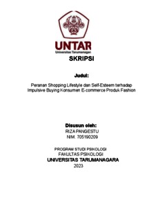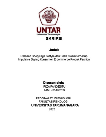 Pangestu, Riza (2023) Peranan Shopping Lifestyle Dan Self Esteem Terhadap Impulsive Buying Konsumen E-Commerce Produk Fashion. Skripsi thesis, Universitas Tarumanagara.