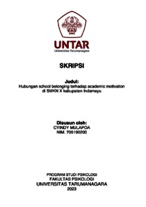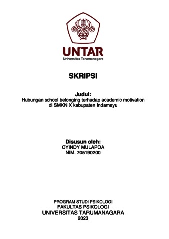 Mulapoa, Cyindy (2023) Hubungan Antara School belonging dan Academic Motivation di SMKN X Kabupaten Indramayu. Skripsi thesis, Universitas Tarumanagara.