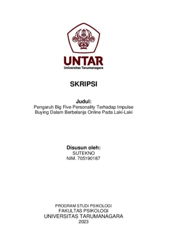 Sutekno, Sutekno (2023) Pengaruh Big Five Personality Terhadap Impulse Buying Dalam Berbelanja Online Pada Pria. Skripsi thesis, Universitas Tarumanagara.