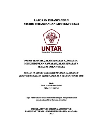 Safitri, Farah Aulia Rahma (2023) Pasar tematik jalan Surabaya, Jakarta: menghidupkan kawasan jalan Surabaya sebagai lokawisata (ARS - 5307). Skripsi thesis, Universitas Tarumanagara.