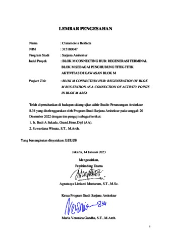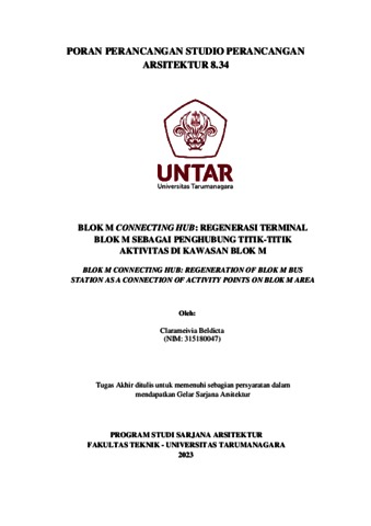 Beldicta, Clarameivia (2023) Blok M connecting hub: regenerasi terminal Blok M sebagai penghubung titik-titik aktivitas di kawasan Blok M (ARS - 5310). Skripsi thesis, Universitas Tarumanagara.