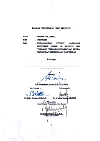 Tarsisius Muwardji, Pembimbing Utama and Hikmahanto Juwana, Co-Promotor 1 and Ariawan Gunadi, Co-Promotor 2 Menjadi Co-Promotor Disertasi Program Pascasarjana Doktor Ilmu Hukum Universitas Krisnadwipayana atas nama: Firmanto Laksana (1901741013), Syafrial Bakri (1901741007). Menjadi Co-Promotor Disertasi Program Pascasarjana Doktor Ilmu Hukum Universitas Krisnadwipayana atas nama: Firmanto Laksana (1901741013), Syafrial Bakri (1901741007).