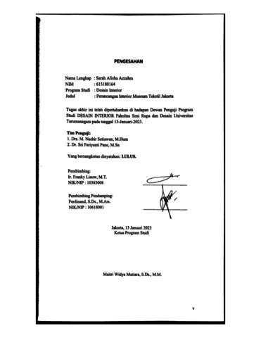 Azzahra, Sarah Alisha (2023) Perancangan interior museum tekstil Jakarta (DI - 2358). Skripsi thesis, Universitas Tarumanagara.