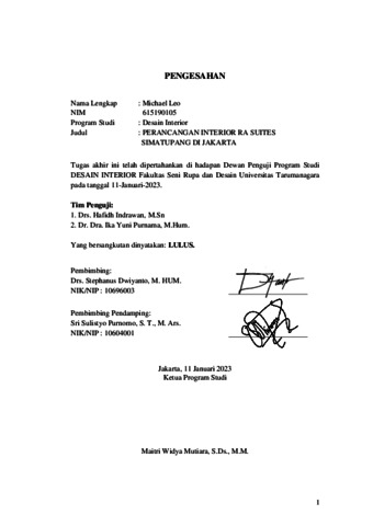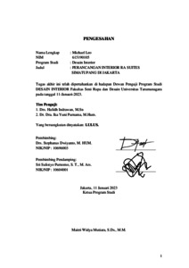 Leo, Michael (2023) Perencangan interior ra suites simatupang di Jakarta (DI - 2363). Skripsi thesis, Universitas Tarumanagara.