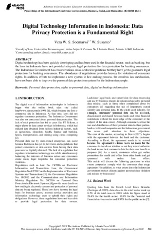 Vera W. S. Soemarwi1, Penulis Pertama and W. Susanto1, Penulis Kedua Digital Technology Information in Indonesia: Data Privacy Protection is a Fundamental Right. Digital Technology Information in Indonesia: Data Privacy Protection is a Fundamental Right.