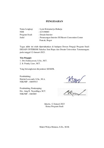 Raharja, Lynn Kristamulya (2023) Perancangan interior JSI resort convention center puncak, Bogor (DI - 2376). Skripsi thesis, Universitas Tarumanagara.