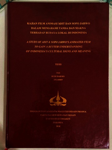 Budi Darmo, Penulis (2016) Kajian Film Animasi Adit dan Sopo Jarwo Dalam Memahami Tanda dan Makna Terhadap Budaya Lokal di Indonesia. Masters thesis, Fakultas Seni Rupa dan Desain.