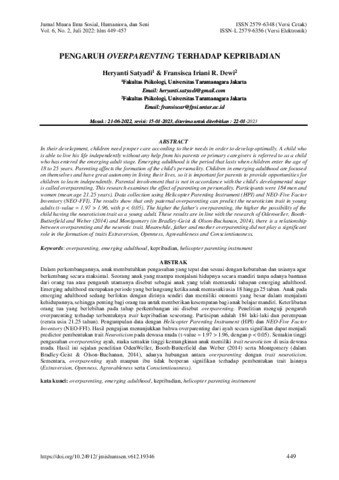 Satyadi, Heryanti and Dewi, Fransisca Iriani Roesmala (2022) PENGARUH OVERPARENTING TERHADAP KEPRIBADIAN. Jurnal Muara Ilmu Sosial, Humaniora, dan Seni, 6 (2). pp. 449-457. ISSN 2579-6348