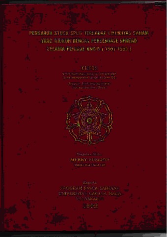 Merry, Tesis (2002) Pengaruh Stock Split terhadapt likuiditas saham yang diukur dengan persentase spread selama periode krisis. Masters thesis, Universitas Tarumanagara.