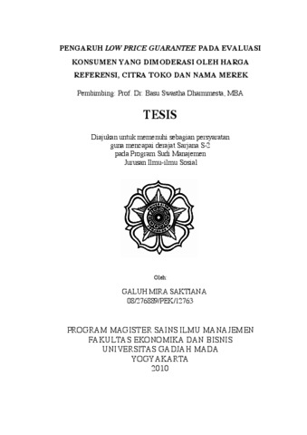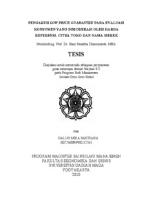 Galuh Ms, tesis (2010) Pengaruh low price guarantee pada evaluasi konsumen yang dimoderasi oleh harga referensi , citra toko dan nama merek. Masters thesis, Universitas Tarumanagara.