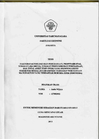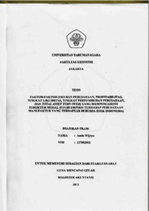 Amin Wijoyo, Tesis (2012) Faktor-faktor ( ukuran perusahaan , profitabilitas, tingkat likuidirtas .... Masters thesis, Universitas Tarumanagara.
