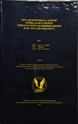 Joice, Tesis (2002) Pengaruh penerapan kondisi pembelajaran efektif terhadap motivasi berprestasi dan hasil belajar mahasiswa. Masters thesis, Universitas Tarumanagara.