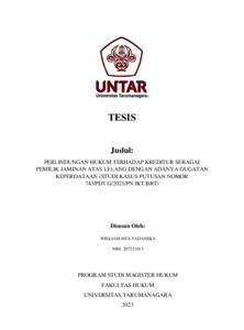 Mulyadanika, William (2023) Perlindungan Hukum Terhadap Kreditur Sebagai Pemilik Jaminan Atas Lelang dengan adanya Gugatan Keperdataan (Studi Kasus Putusan Nomor 743/Pdt.G/2021/PN Jkt.Brt). Masters thesis, Universitas Tarumanagara.