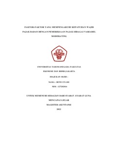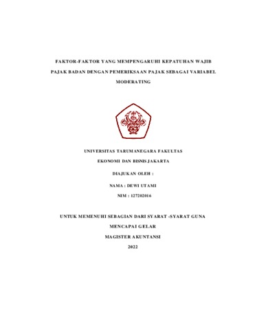 Utami, Dewi (2023) FAKTOR-FAKTOR YANG MEMPENGARUHI KEPATUHAN WAJIB PAJAK BADAN PEMERIKSAA PAJAK SEBAGAI VARIABEL MODERATING. Masters thesis, UNIVERSITAS TARUMANAGARA.