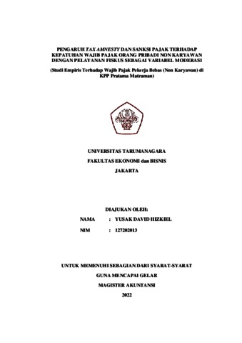 Kata Kunci: Tax Amnesty, sanksi pajak, pelayanan fiskus, kepatuhan Wajib Pajak