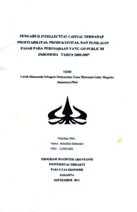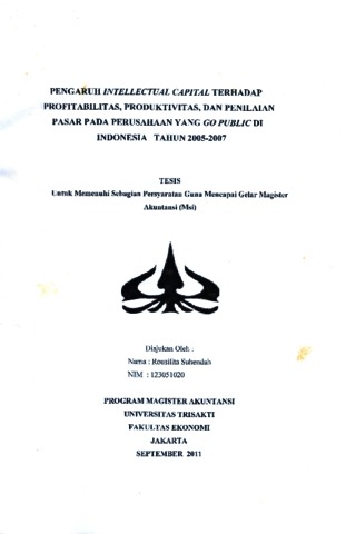 Rousilita Suhendah, Tesis (2011) Pengaruh intellectual capital terhadap profitabilitas , produktivitas dan penilaian pasar pada perusahaan yang go public di Indonesia Tahun 2005-2007. Masters thesis, Universitas Tarumanagara.