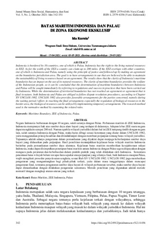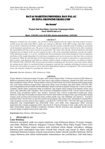 KURNIA, IDA (2021) Batas Maritim Indonsia dan Palau di Zona Ekonomi Eksklusif. Jurnal Muara Ilmu Sosial, Humaniora, dan Seni, 5 (2). ISSN 2579-6348