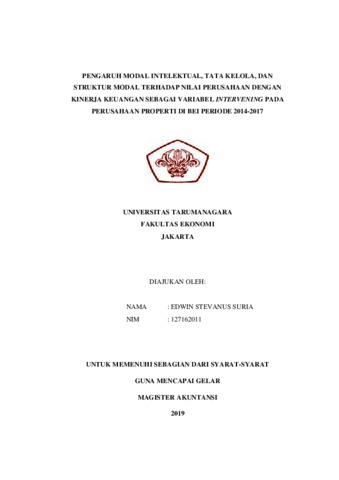 Suria, Edwin Stevanus (2019) Impact of Intellectual Capital, Corporate Governance, and Capital Structure on Company’s Value with Financial Performance as Intervening Variable on Property Companies in IDX period 2014-2017. Masters thesis, UNIVERSITAS TARUMANAGARA.