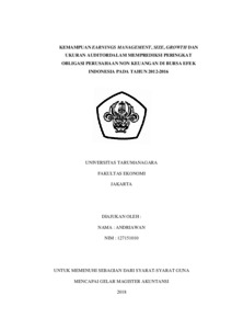 Andriawan, Andriawan (2018) KEMAMPUAN EARNINGS MANAGEMENT, SIZE, GROWTH DAN UKURAN AUDITORDALAM MEMPREDIKSI PERINGKAT OBLIGASI PERUSAHAAN NON KEUANGAN DI BURSA EFEK INDONESIA PADA TAHUN 2012-2016. Masters thesis, UNIVERSITAS TARUMANAGARA.