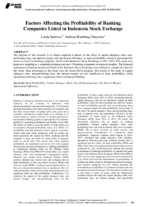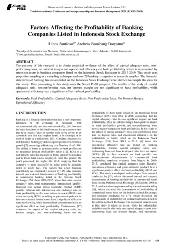 Linda santioso, Dokumen (2021) "Factors Affecting the Profitability of Banking Companies Listed in Indonesia Stock exchange. "Factors Affecting the Profitability of Banking Companies Listed in Indonesia Stock. ISSN 2352-5428