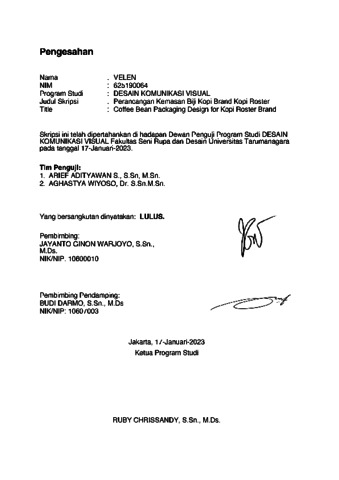 Velen, Velen (2023) Perancangan kemasan biji kopi brand kopi roster (DKV - 2996). Skripsi thesis, Universitas Tarumanagara.