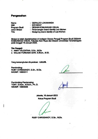 Lokananda, Geraldo (2023) Perancangan brand identity les kitchen (DKV - 2954). Skripsi thesis, Universitas Tarumanagara.