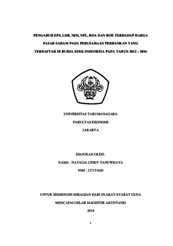 Tanuwijaya, Natalia Cindy (2018) PENGARUH EPS, LDR, NIM, NPL, ROA DAN ROE TERHADAP HARGA PASAR SAHAM PADA PERUSAHAAN PERBANKAN YANG TERDAFTAR DI BURSA EFEK INDONESIA PADA TAHUN 2012 – 2016. Masters thesis, UNIVERSITAS TARUMANAGARA.