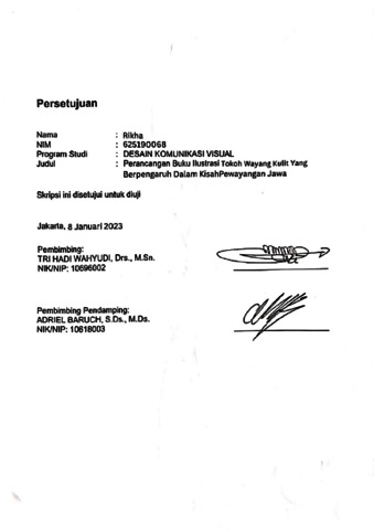 Rikha, Rikha (2023) Perancangan buku ilustrasi tokoh wayang kulit yang berpengaruh dalam kisah pewayangan Jawa (DKV - 2966). Skripsi thesis, Universitas Tarumanagara.