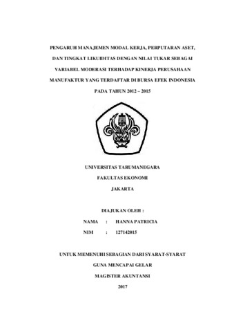 Patricia, Hanna (2017) PENGARUH MANAJEMEN MODAL KERJA, PERPUTARAN ASET, DAN TINGKAT LIKUIDITAS DENGAN NILAI TUKAR SEBAGAI VARIABEL MODERASI TERHADAP KINERJA PERUSAHAAN MANUFAKTUR YANG TERDAFTAR DI BURSA EFEK INDONESIA PADA TAHUN 2012 – 2015. Masters thesis, UNIVERSITAS TARUMANAGARA.
